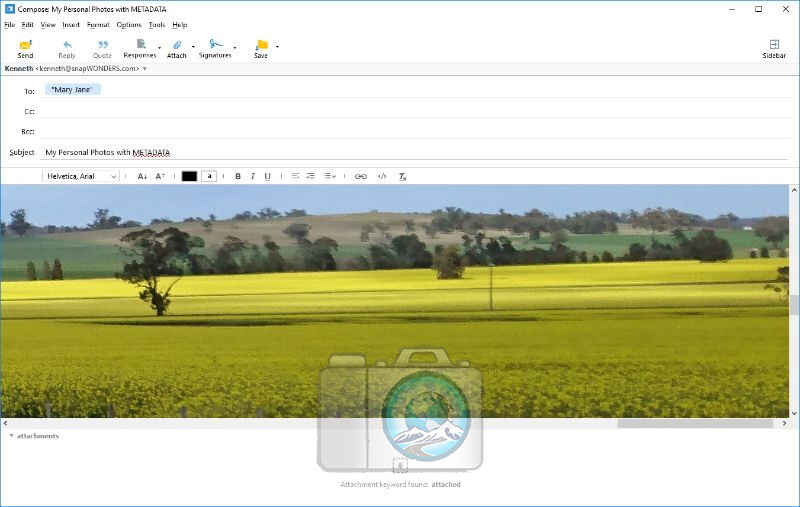 You could test to see if your Email Client is tampering with your Metadata by running the photo via snapWonders analyser to check the metadata before and after to confirm whether the metadata remains unchanged. To avoid confusion, you would probably need to start with you having the original photo with the known metadata, and send this to the person for testing and check the meta data at each stage: